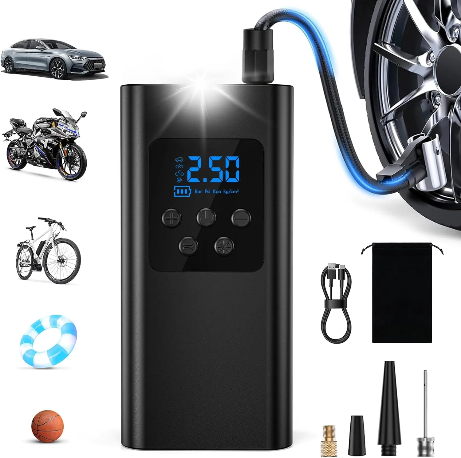 Singphere Car Tire Inflator – Powerful 45L/Min Portable Air Compressor, Fast Electric Inflator with LED, 6000mAh Battery, 4 Modes for Cars, Bicycles, Motorcycles & Balls